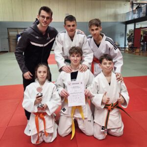 In der anschließenden Begegnung gegen das Gymnasium Rutesheim gelang ein deutlich besserer Start: Philipp Hiller sicherte den ersten Punkt, Leo Reiss erhöhte auf 2:0. Benjamin Krischke zeigte einen engagierten Kampf, musste sich nach intensivem Ringen jedoch geschlagen geben. Für besondere Spannung sorgte die Begegnung von Benaiah Weiss: Nach einer frühen Führung durch einen Hüftwurf kämpfte sich sein Gegner zurück und glich in letzter Sekunde aus – die Entscheidung fiel im „Golden Score“. In einem hochintensiven Duell setzte sich letztlich der Herrenberger durch, indem er erneut seinen dominanten Nackengriff etablierte und so den Rutesheimer ein weiteres mal über seine Hüfte auf den Rücken beförderte. 3:1 für die Judoka des Gäuclubs. Einen fulminanten Schlusspunkt in dieser Begegnung setzte Finn Reiss: mit der ersten Aktion warf er seinen Kontrahenten bereits nach wenigen Sekunden deutlich auf den Rücken, sodass die Kampfrichter die höchste Wertung „Ippon“ vergaben – das vorzeitige Kampfende, vergleichbar mit dem K.O. im Boxen. Damit stand für das Schulteam aus Herrenberg ein überzeugender 4:1-Erfolg zu Buche.